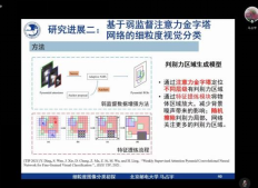 马占宇教授分别细粒度图像分类的背景、其团队近期研究进展、未来展望等方面展开报告。首先,马占宇教授介绍了细粒度图像分类的定义、分类任务的难点以及细粒度图像分类任务的典型解决思路(如数据增广策略、网络结构设计、损失函数优化)。接着,马占宇教授介绍了他们团队近期在细粒度图像分类方面的研究工作。第一个是提出一种细粒度识别新思路,通过不同数据增广,实现对多粒度下有判别力信息进行渐进式学习,第二个是通过双通道层级细粒度特征提取结构来提升细粒度图像分类效果,第三个是通过一个损失函数挖掘图像中细微的特征,解决模型优化困的问题。最后介绍了自定义的细粒度分类和以人为中心的细粒度分类,得到了粗细粒度特征和分类之间的关系。马占宇教授丰富精彩的报告为学校师生的学习和科研工作带去了思想启发,也为同学们了解细粒度图像分类提供了有益指导。