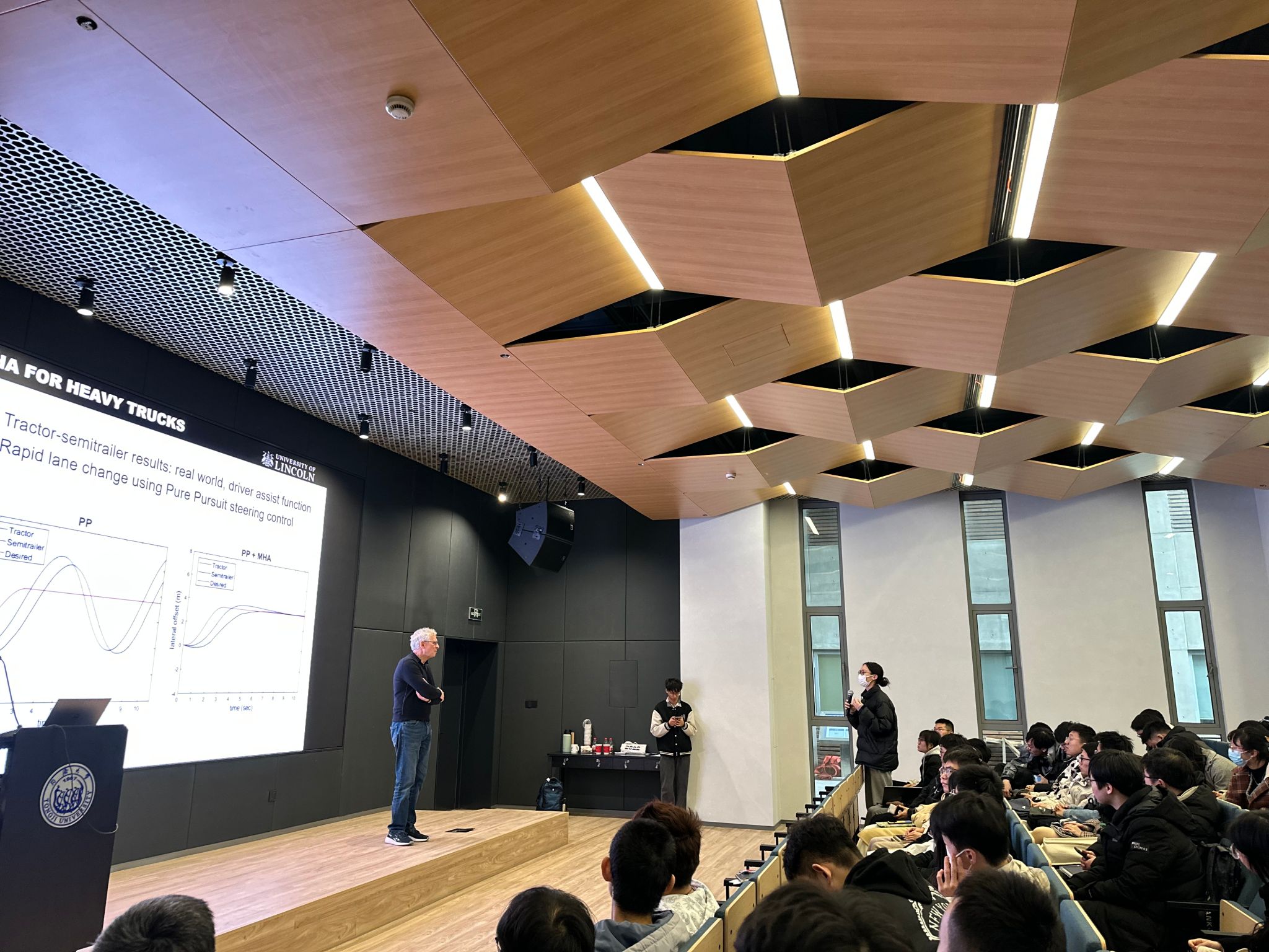 报告结束后,Timothy Gordon教授就碰撞后稳定性控制及自动驾驶相关的问题与老师和同学们进行了交流。他也根据自身经历勉励同学们要积极拓宽视野,努力探索、发现并解决新的科学问题。此次报告进一步拓展了我校师生的视野,增强了对碰撞后稳定性控制的理解与认识。(文/张皓 图/任倩 尹章云)