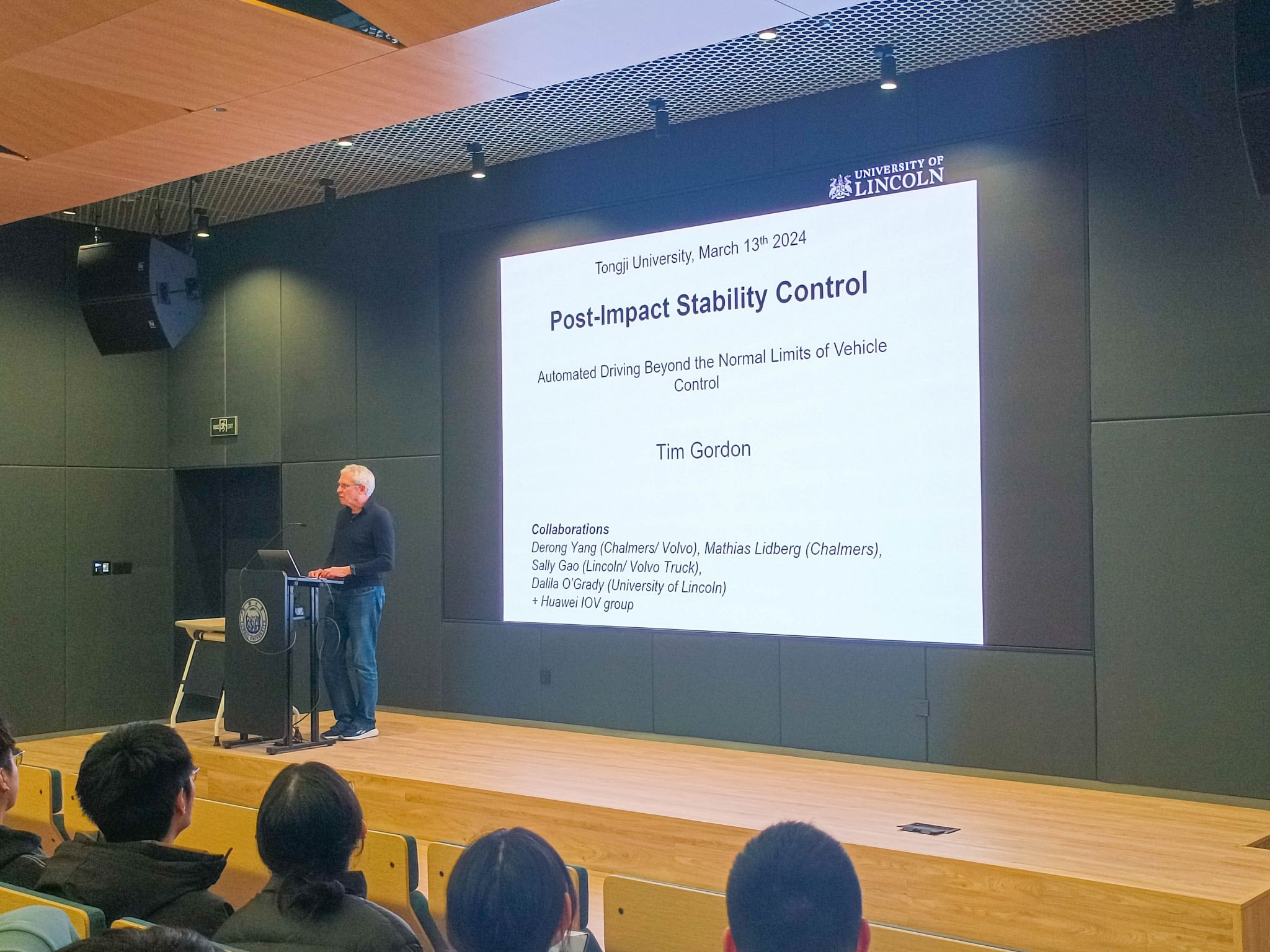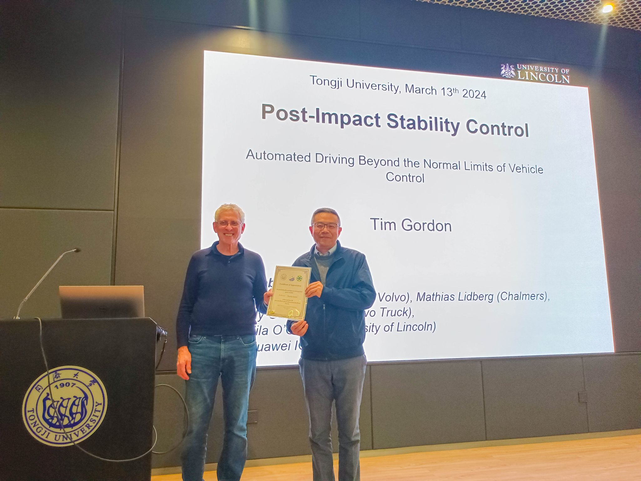 2024年3月13日下午,由学院、上海自主智能无人系统科学中心联合举办的智·信讲堂第64期在开云官网智信馆117报告厅开讲。本次讲堂邀请英国林肯大学Timothy Gordon教授作“Post-Impact Stability Control-automated driving beyond the normal limits of vehicle control”主题报告,由陈虹教授主持。