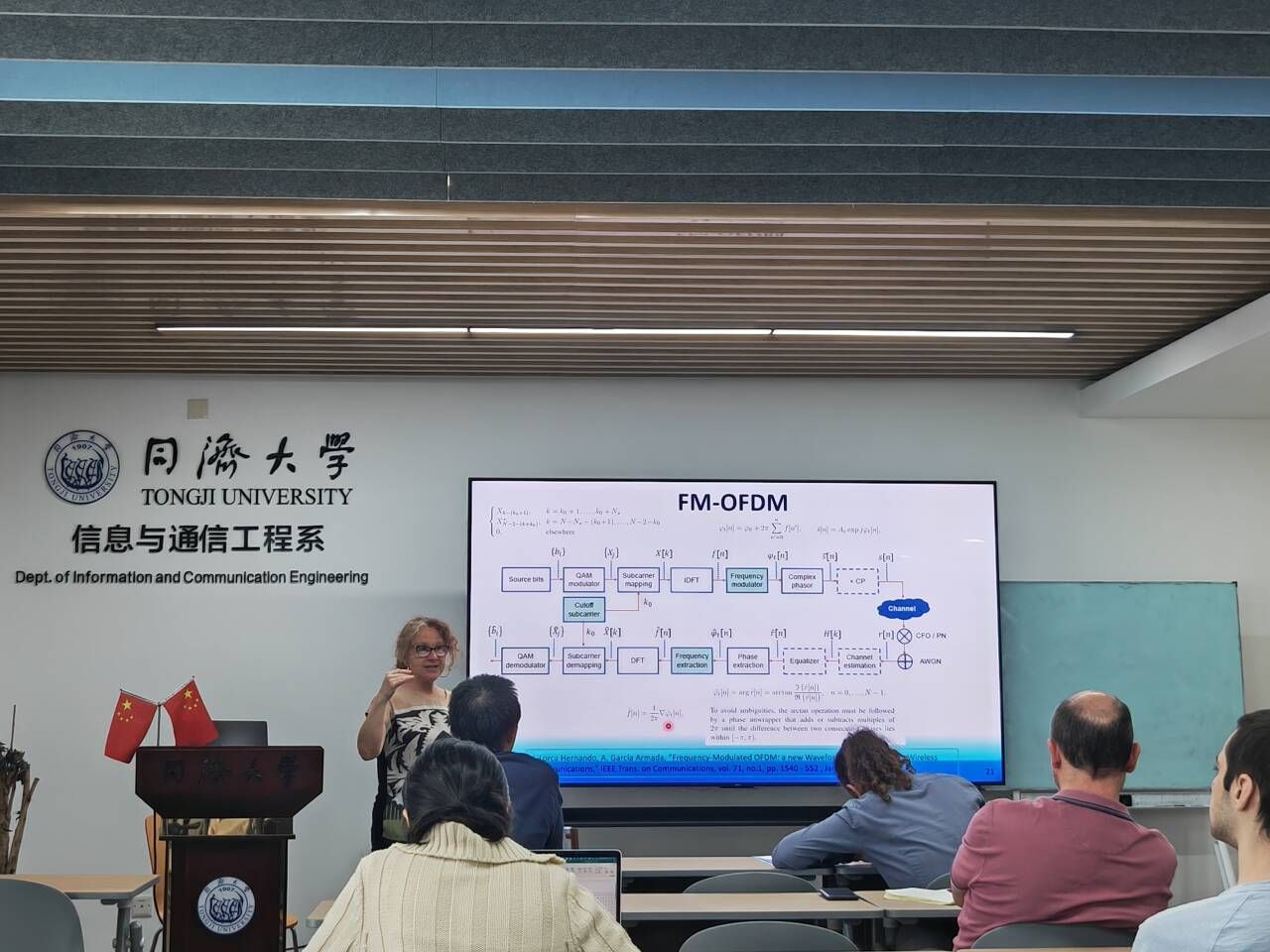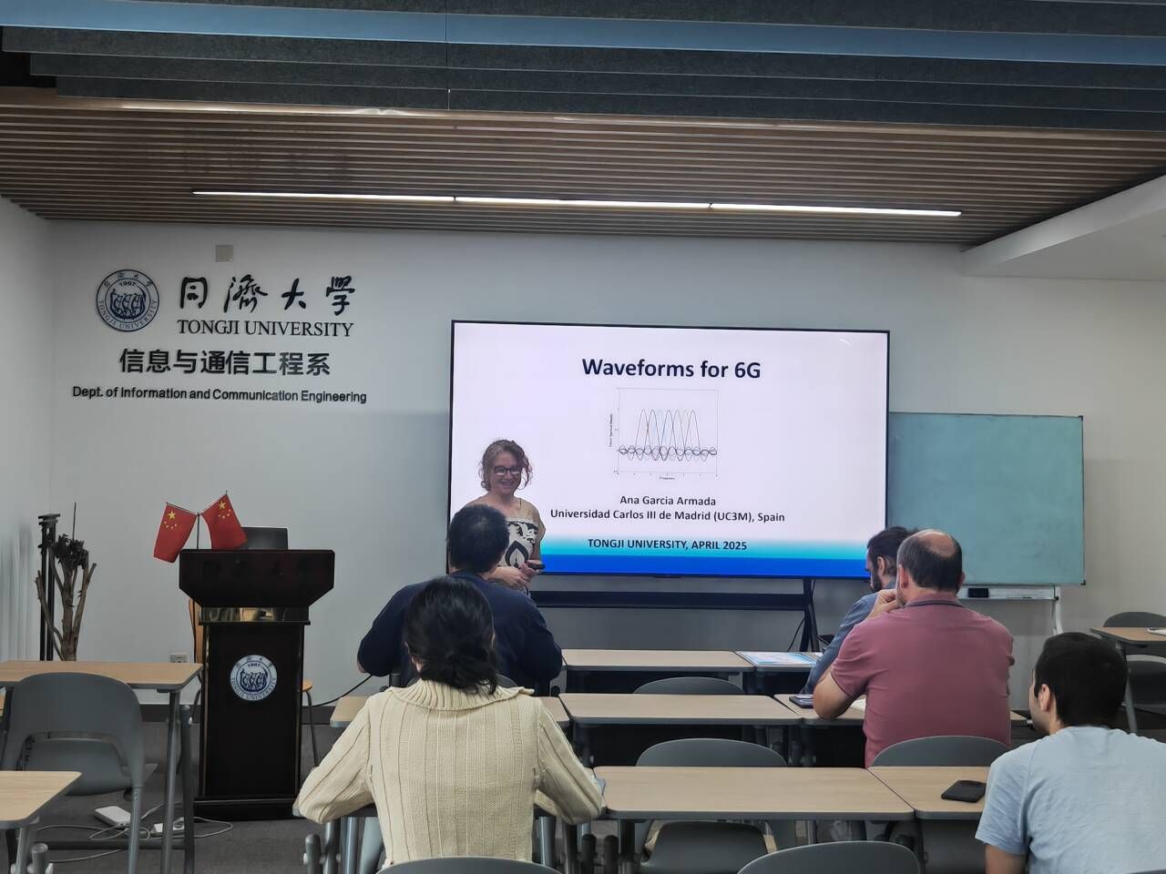 报告结束后,Ana García Armada教授和与会师生进行了亲切交流和讨论,她也根据自身经历勉励同学们要积极拓宽视野、努力探索、发现并解决新的科学问题。此次报告进一步拓展了我校师生的视野,加深了大家对6G波形技术的理解和认识。