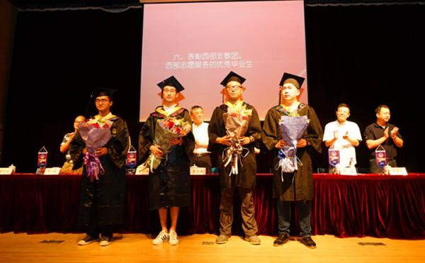 毕业典礼上,学院表彰了上海市优秀毕业生和校级优秀毕业生,并特别表彰了西部计划和西部志愿者的优秀毕业生;校友联络人也上台接受授旗,今后各班级的同学将通过联络人使每一位毕业生仍然保持彼此之间以及和母校的联系。