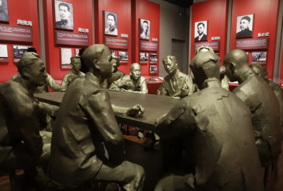 中共一大纪念馆以红色为主基调,展厅内可谓是“步步有景,步步有故事”。驻足在一件件铭刻着历史印记的文物面前,透过文字介绍,循着时间脉络,感慨于苦难深重的旧中国,一代代仁人志士的奋斗与牺牲,同志们由此能够更清晰地体味到为什么只有中国共产党才能救中国。