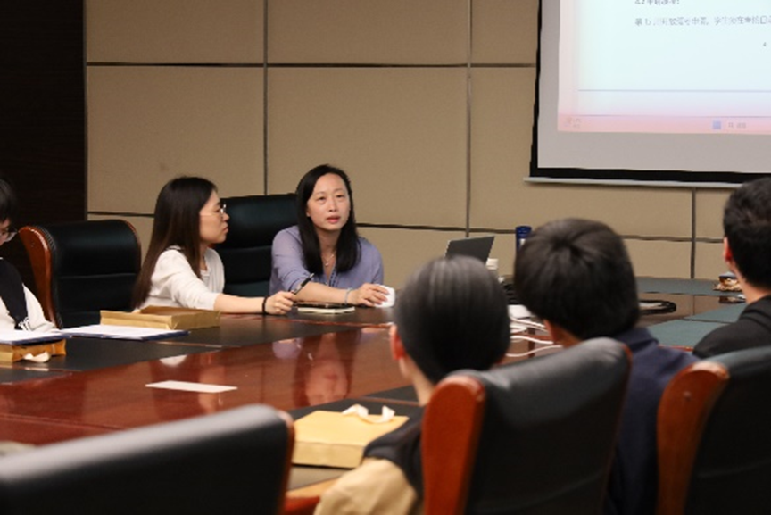 本科教务办公室主管熊婉、副主管刁雪扬老师开展本科教学相关事务的培训,针对培养计划、选课退课、创新学分认定、缓考要求等具体事务进行讲解说明,并形成了常见教学事务问题的共享文档,便于学习委员有效开展工作。熊婉老师希望学习委员树立责任意识,定期与学生沟通,了解学生在学习中遇到的困难与挑战,及时准确地收集和反馈教学问题,做好学生和老师沟通的桥梁。