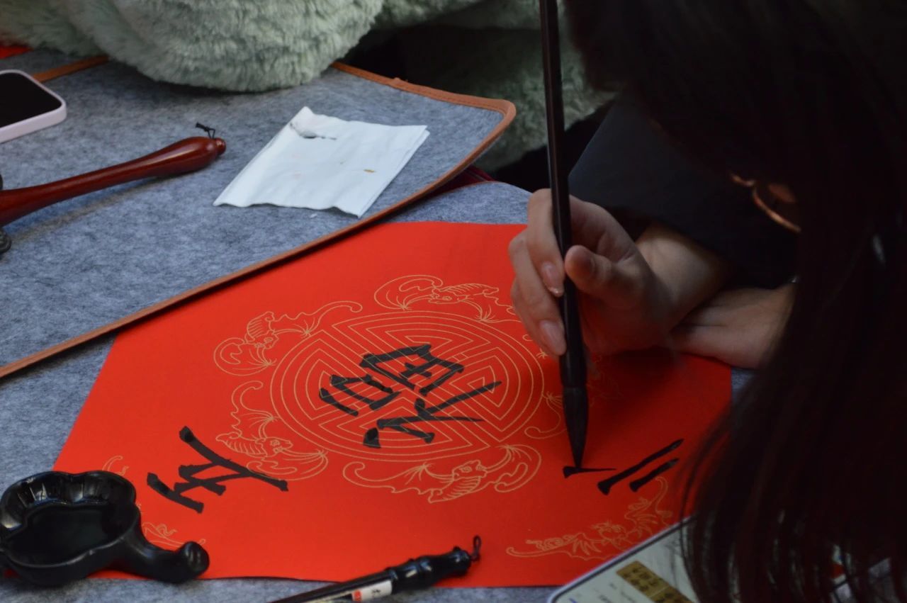 在书画区,大家纷纷挥毫泼墨,书写春联、福字,书法老师的笔走龙蛇间,洋溢着浓厚的节日气氛。参与的同学们也一展才艺,亲手写下自己对祖国的祝福和新春的期许。