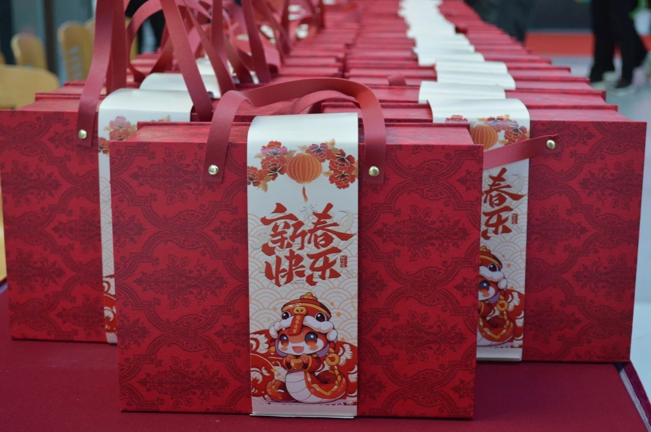 与会老师为留校学子赠送了由学校精心准备的新春礼包和学院定制的福袋,同时传递了温暖的关怀和节日的祝福。