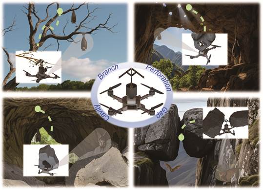 “智能飞鸟”项目是团队面向军事国防、防灾减灾、低空经济等国家重大需求,针对当前空中无人系统存在的长时作业能力差、与真实物理环境交互能力弱、任务执行自主性低等问题而设立的。团队创新性提出基于非对称双稳态设计的超快速大折展比停歇机构与人工智能算法引导的自主控制框架,研发了多模态自适应无人机停歇系统装备-“智能飞鸟”,已能在管道、岩石、电缆、墙体等多类自然与人工环境结构中实现自主稳定停歇,在“伪装驻留—智能感知—精准摧毁”新质战斗力生成等方面具有重要应用前景。团队已在IEEE/ASME T-MECH、IEEE TIE、ICRA/IROS发表多篇学术论文,申请发明专利多项。