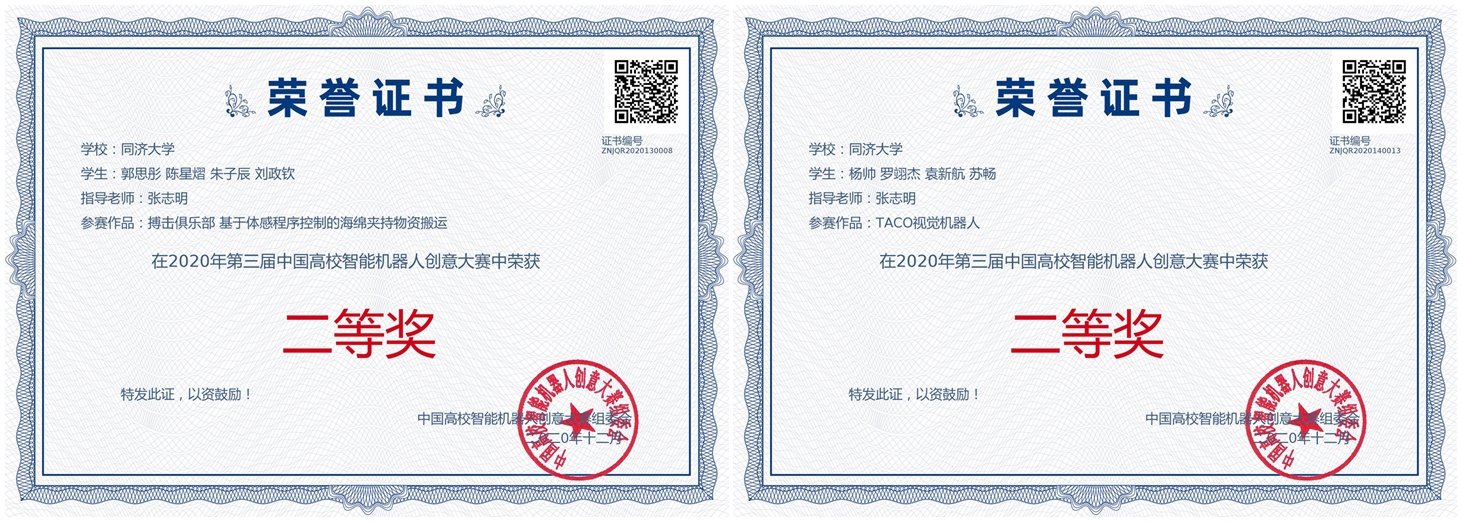电信学院创新基地面向全校本科生组织参赛,由于比赛时间的推迟,备赛工作受到较大影响,调整组员后的8支参赛队伍经过初赛获得不同赛项的5个决赛资格,在决赛中分别获得一等奖1项、二等奖2项、三等奖2项。决赛获奖队伍来自全国大学生智能汽车竞赛实验室,由教师张志明、朱劲、余有灵指导,本科生黄钰(电子科学与技术)、张建威(电子科学与技术)和黄紫琦(文化产业管理/人文学院)完成的作品——“家庭日常护理服务型机器人”获主题一(创意类机器人)三等奖;杨卓沅(电子科学与技术)、冯翊(自动化)、石雨辰(电子科学与技术)和贾浩东(自动化)组成的“代码全队”获主题三(体感仿人格斗)一等奖;郭思彤(自动化)、陈星熠(电子科学与技术)、朱子辰(自动化)和刘政钦(自动化) 组成的“搏击俱乐部队”获主题三(体感仿人格斗)二等奖;杨帅(测绘工程/测绘与地理信息学院)、罗翊杰(自动化)、袁新航(信息安全)和苏畅(电气工程及其自动化)组成的“TACO队”获主题三(仿人视觉对抗)二等奖;刘昊(自动化)、韩立君(自动化)、赵文瑞(电气工程及其自动化)和张米(电气工程及其自动化) 组成的“智信夺宝队”获专项赛(迷宫夺宝)三等奖。