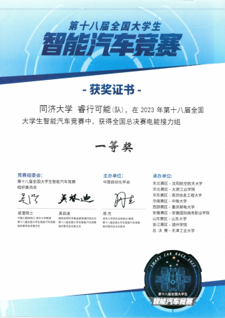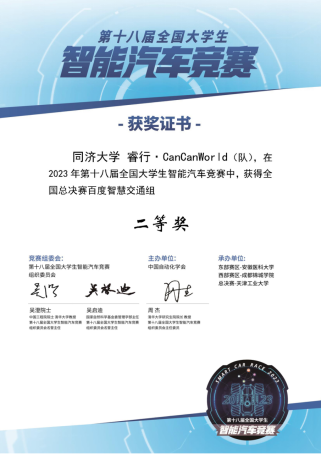 2023年第十八届全国大学生智能汽车竞赛全国总决赛(天津)获奖证书