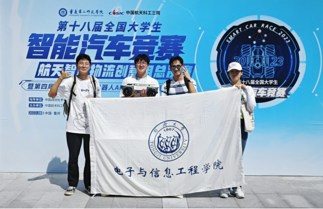 2023智能车竞赛航天智慧物流创意组总决赛“睿行•supernova队”(队员从左至右依次为瞿闻希、许一航、张氏博文、朱捷)