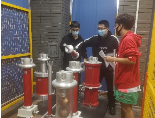 康荣老师带领同学们参观了电力电子与传动实验室,并对大功率电机及电力电子调速原理与设备进行了讲述。易俊老师对高低压开关柜、配电柜等电力设备进行了详细的介绍,带领同学参观了实验室典型的供配系统。在高电压与绝缘技术实验室,张鑫老师讲解了高电压试验原理与试验设备,并指导学生亲自进行直流耐压实验。通过观察高电压击穿、累积电荷放电现象,同学们真实地“接触”了数万伏特的高电压。