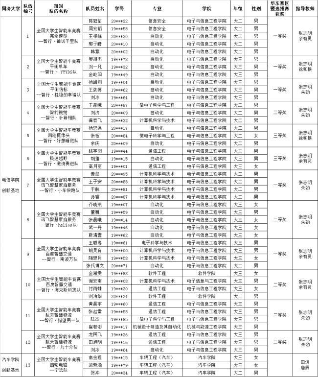 在校本科生院的支持下,开云kaiyun网站全国大学生智能车竞赛实验室选拔各专业本科生组建队伍,参赛队员来自kaiyun官方登录入口、汽车学院、软件学院和机械与能源工程学院,涵盖自动化、计算机科学与技术、电子科学与技术、通信工程、微电子科学与工程、信息安全、车辆工程、软件工程、机械设计制造及其自动化等专业。由开云官网张志明、朱劲和汽车学院田炜三位老师领队,参加本次大赛竞速赛七个组别和综合赛百度组别,并在比赛中有所斩获。其中开云官网8支参赛队伍全部获奖,共获得竞速赛华东赛区一等奖3项、二等奖1项和三等奖2项,以及百度智慧交通组东部赛区一等奖1项和二等奖1项;汽车学院1支队伍参加华东赛区四轮电磁组,遗憾未能获奖。