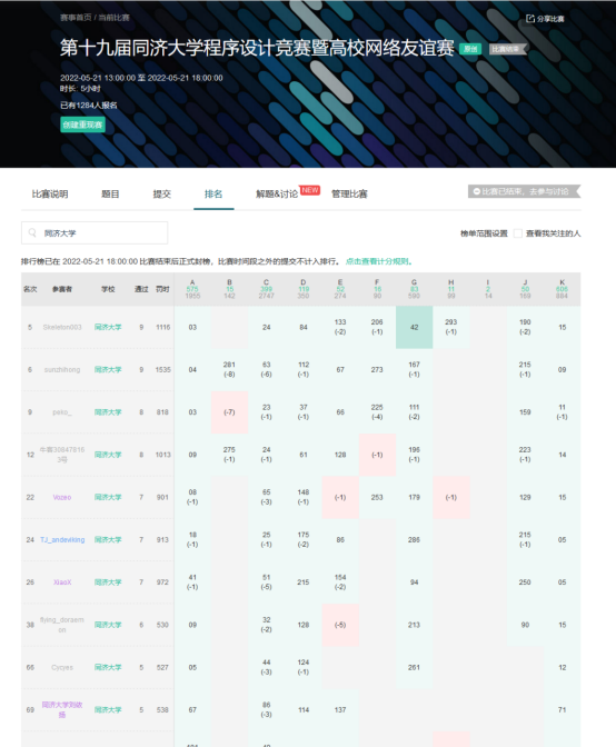 本次比赛采用线上赛的形式在牛客网举办。共有来自全校17个专业/学堂的90余名本科生参加了比赛,与来自全国320余所高校的近1200名优秀参赛选手同场竞技,经过5个小时的激烈角逐,校内共评选出一等奖5人,二等奖10人,三等奖20人。
