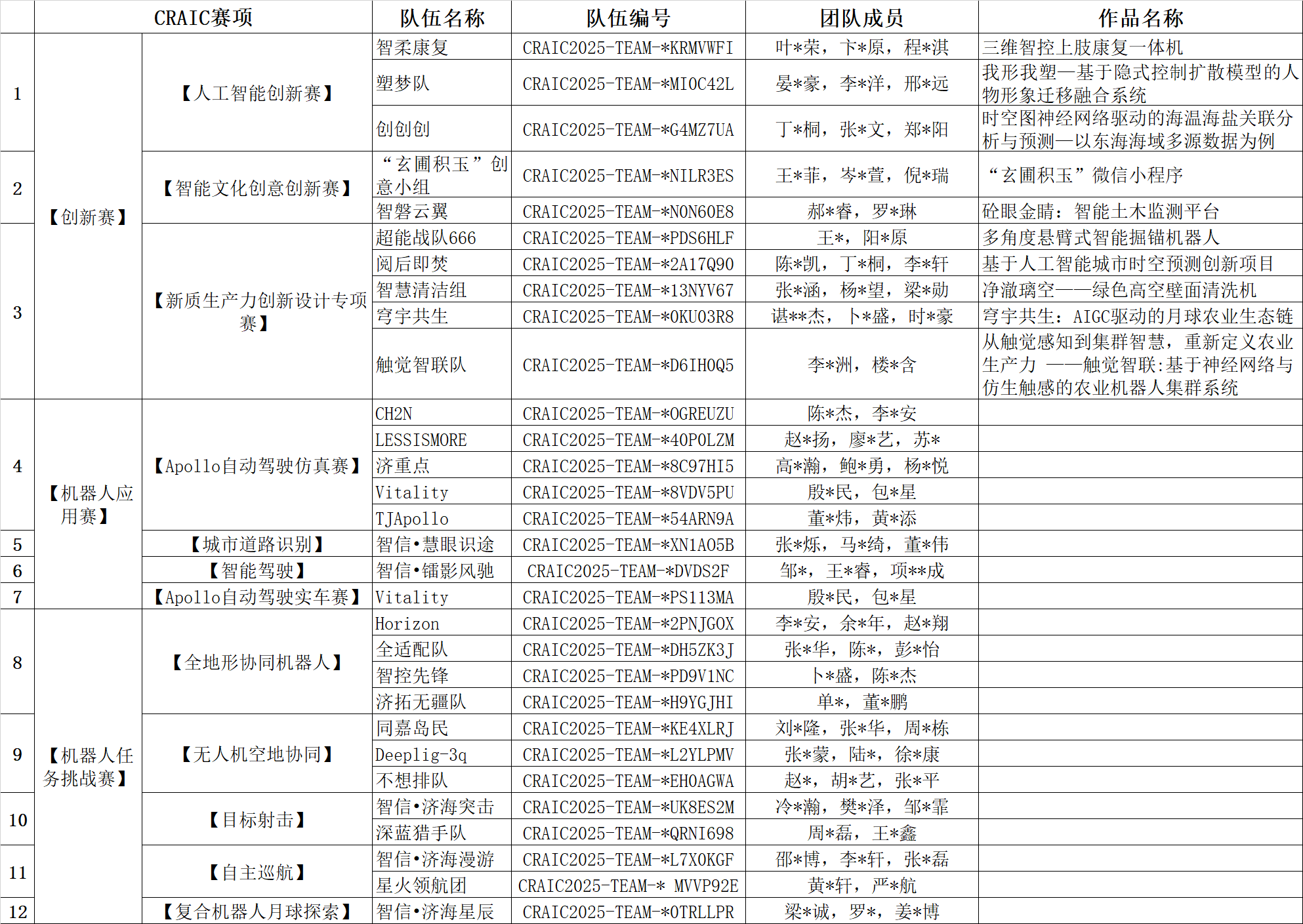2025CRAIC校内赛晋级队伍名单