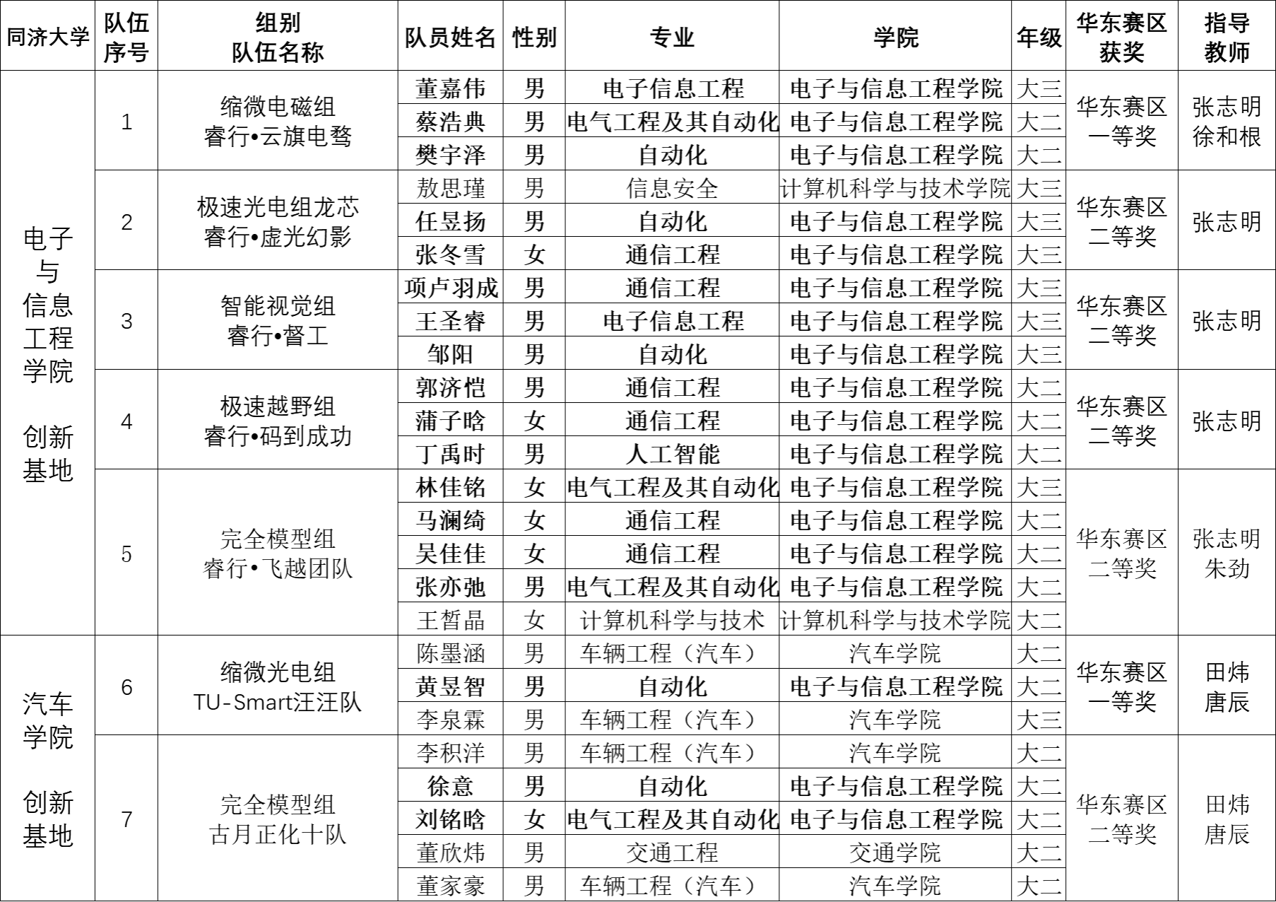 全国大学生智能汽车竞赛由吴启迪教授、吴澄院士联合发起倡议举办,最初由教育部自动化专业教指委创办,现由中国自动化学会主办,已连续多次入选中国高等教育学会《全国普通高校大学生学科竞赛排行榜》。竞速赛要求在规定的车模平台上,使用竞赛组委会指定的微控制器作为核心控制模块,通过增加道路传感器、电机驱动电路以及编写相应软件,使车模能够自主识别道路或者目标,按照规定路线或者任务行进,参赛队伍的名次(成绩)由成功完成现场赛道比赛任务的时间决定。竞赛涵盖理论设计、实际制作、整车调试、现场比赛等环节,要求参赛队员以团队形式协同工作,完整经历从设计到实现的工程性的研究开发项目全过程。本届华东赛区竞速赛分为11个组别,共有来自上海市、江苏省、江西省的近80所高校、427支代表队、2300余名师生同台竞技。