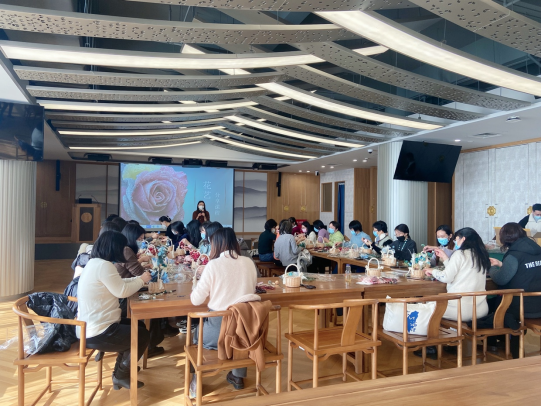 为丰富学院女教工的精神文化生活,提升艺术素养,2022年12月13日中午,学院在嘉定校区图书馆文榷堂举办“朝花夕拾 花忆永生”插花活动,全院40位女教工参加。